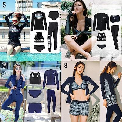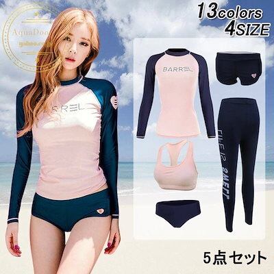 2枚購入で 2oo円FF!水着 レディース 体型カバー フィットネス水着 5点セット ビキニ 韓国風 長袖ラッシュガード 大きいサイズ 3040代 ママ水着 サーフィン服 日焼け防止