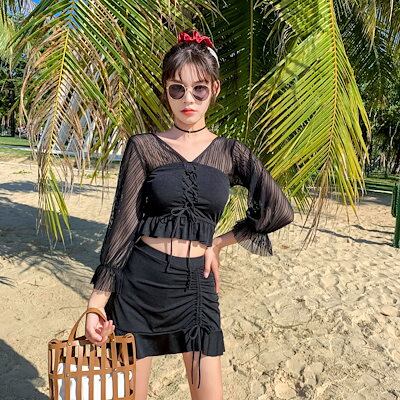 24ビーチツアー 水着 セパレート水着 パット付き ノンワイヤー ギャザリング ハイウエスト 長袖 日よけ大きいサイズ 韓国 水着 レディース スイムウェア