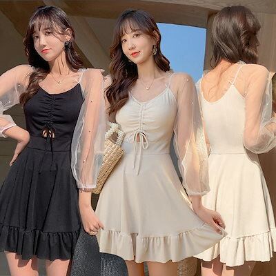 24 ビーチツアー 水着 ワンピース水着 セーフティパンツ ノンワイヤー パット付き レース 長袖日よけ パンチラ防止大きいサイズ 韓国 水着 レディース スイムウェア 水着 ビーチツアー ワンピ