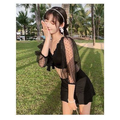 新作 水着 レディース 2点セット 小胸 バンドゥ 水着セット ビキニ パレオ 大きいサイズ リゾート パッド付き 韓国風 体型カバー 日焼け防止 代 30代 40代 50代