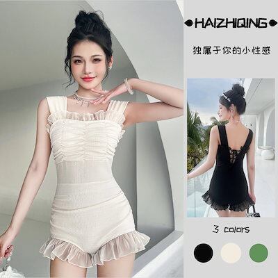 水着 レディース 競泳連胴水着控えめ純色で腹隠し痩せ学生フィットネス平角少女水着風温泉入浴体型カバー 韓国ファッション