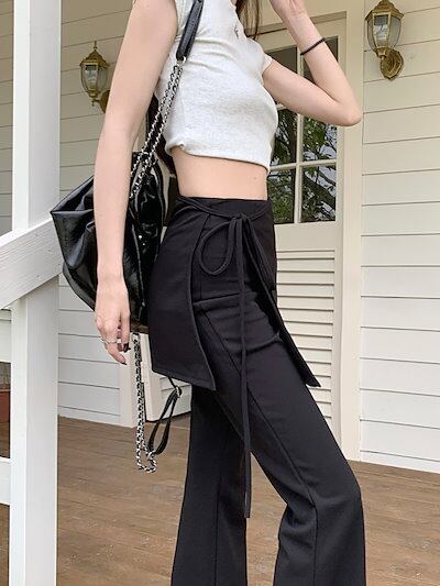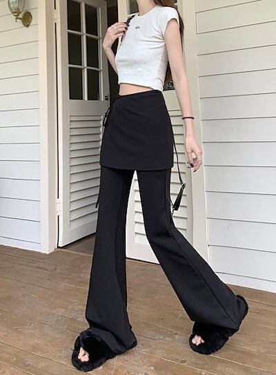 2024 春夏パンツ ロング丈 ワイド ハイウエスト 美脚効果 脚長効果 細見え かわいい ゆったり ルーズ カジュアル ファッション系 レディース お出かけ