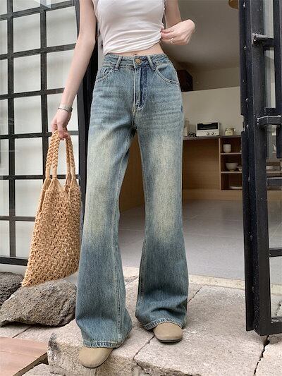 2024春夏パンツ デニム ジーンズ ワイド ストレート ハイウエスト 脚長効果 美脚効果 細見え ウォッシュ加工 夏 カジュアル おしゃれ かわいい 韓国ファッション レディース お出かけ