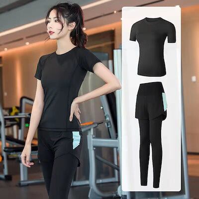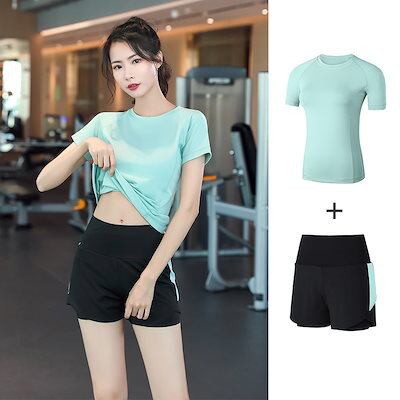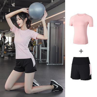 【2点セット】 春夏ランニング お家ヨガウェア セットアップ レディース Tシャツ ヨガウェア上下セット ジム ランニング フィットネススポーツブラベスト上着半袖長ズボン ジョガーパンツ 春夏秋