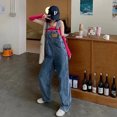 2024 春 夏 サロペット ベルト付きジーンズ レトロ レジャー スリム ゆったり ワイドパンツ 引きずりズボン 長ズボン レディース 体型カバー