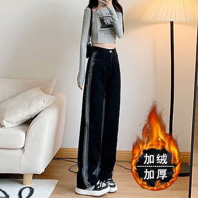 2024脚長効果! 厚手 裏起毛デニムパンツ ジーンズ レディース パンツ ワイドパンツ スキニー 裏起毛 韓国ファッション ズボン秋冬