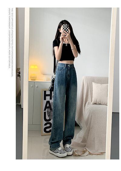 2024脚長効果! 裏起毛デニムパンツ ジーンズ レディース パンツ ワイドパンツ スキニーモップパンツ 裏起毛 韓国ファッション ズボン秋冬