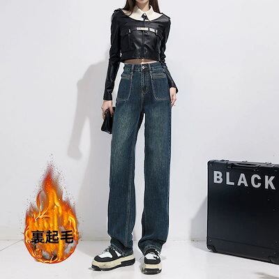 2024脚長効果! 裏起毛デニムパンツ ジーンズ レディース パンツ ワイドパンツ スキニー 裏起毛 韓国ファッション ズボン秋冬