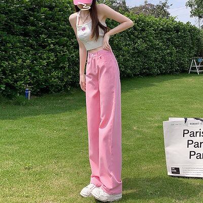 8COLORS 2024春夏 ハイウエスト おしゃれ 薄手 デニムパンツ ゆったり 大きめサイズ 着痩せ モップパンツ ワイドパンツスラックスパンツ 韓国ファッション スキニーパンツ 脚長効果! ひん