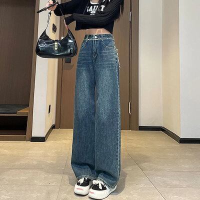 韓国ファッション 2024新作 春夏 ジーンズ スキニー レッグ ハイウエスト おしゃ 細見え ジーンズ レディース ワイドパンツ ひんやりボトムス