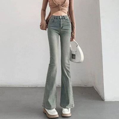 本日限定人気NO.1デニムパンツ レディース フレアパンツ ボトムス ストレッチ ブーツカット スキニー ストリ美脚 ジーンズ ジーパンツひんやりボトムス 脚長効果!