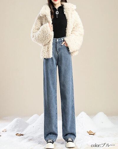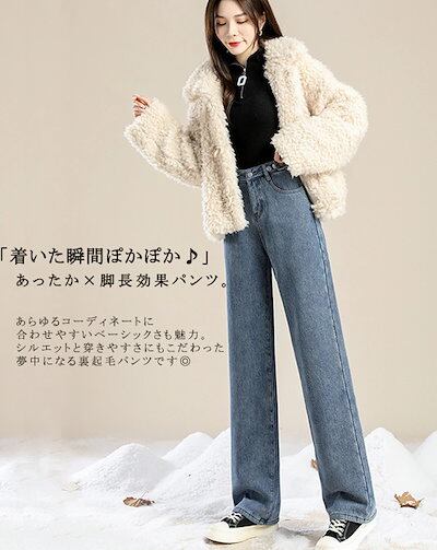 裏起毛 パンツ レディース 秋冬 ストレートパンツ 冬 暖かい ロング デニムパンツ 女性用 ワイド ふんわり 落ち感 体型カバー ロングパンツ デニム ストレート ズボン ジーンズ ジーパ