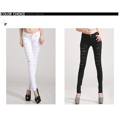 Chio'2ndスキニーパンツレディース黒白デニムストレッチ脚ダメージ穴あきlキレイめ細身大きいサイズジーンズジーパンボトムス
