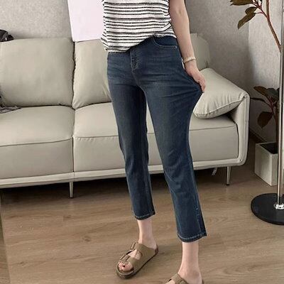 【人気商品】クロップドパンツ 7分丈 デニム風パンツ ストレッチ レディース デニム 七分丈 美脚 ボトムス 脚長効果 大きいサイズ 大人 女性 ブルー 春夏 薄手 ジーンズ レギパン カジュアル