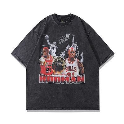 ヒップホップのレトロなロッドマンのポートレートがプリントされた半袖メンズとレディースのハイストリートウォッシュアンドエイジドルーズTシャツ