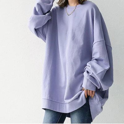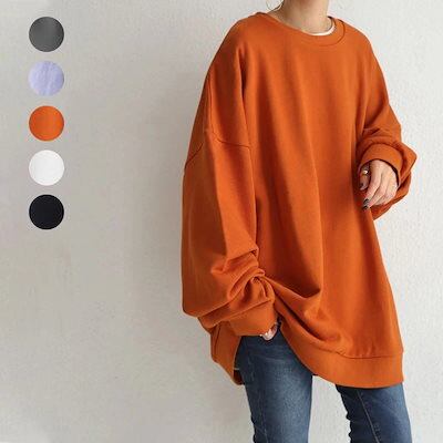 春 秋 Tシャツ カットソー オーバーサイズ 長袖 綿 無地パーカー レディース トップス 大きいサイズ ロング 韓国ファッション 上着 ゆった プリントカットソ