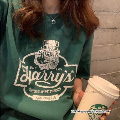 Tシャツ レディース tシャツ Tシャツ 五分袖 トップス カットソー 丸首 ロングt ミドル丈 ワイド 可愛い プリント ティー 白 グレー 緑 カーキ 大きめ 楽チン