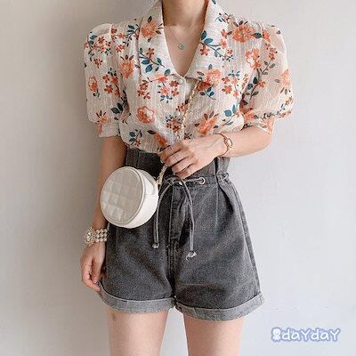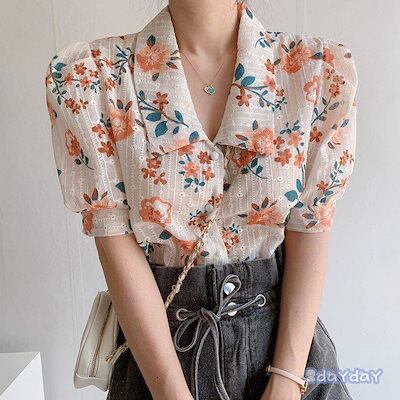 ブラウス レディース 夏 花柄トップス シフォンブラウス 半袖 シャツ プリント 体型カバー シフォン シャツブラウス 復古風 夏物 40代