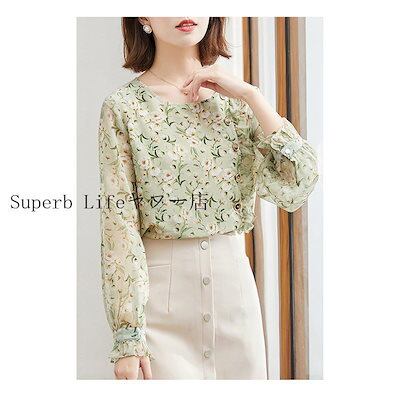 レディース 花柄 シルク ワイシャツ トップス プリント デザイン 夏新作 長袖 アキ ボタン 大きサイズ シフォン シャツ