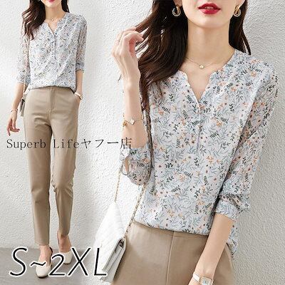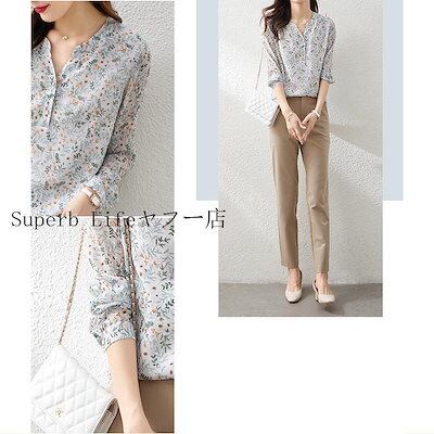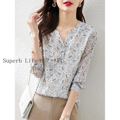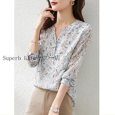 レディース ファッション アキ 長袖 シャツ 花柄 プリント 夏新作 タイドシャツ ハイエンド 小花 シフォン アキ フェミニン シルエット