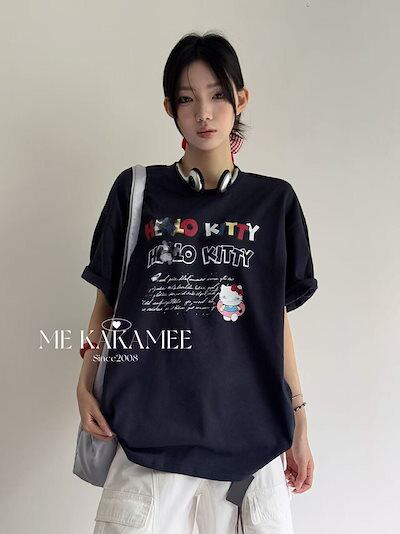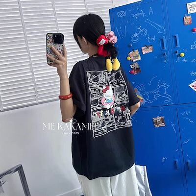 カジュアル バックプリント スプレー加工 カートゥーン KTデザイン ビッグシルエット レディース Tシャツ 8650