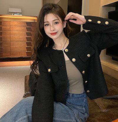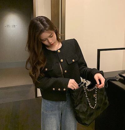 レディースファッション アウター ツイードジャケット ジャケット 金ボタン セレカジ キレカジ 大人可愛い 韓国ファッション 秋服 春服 おしゃれ コンサバ シンプル モノトーン ノーカラー
