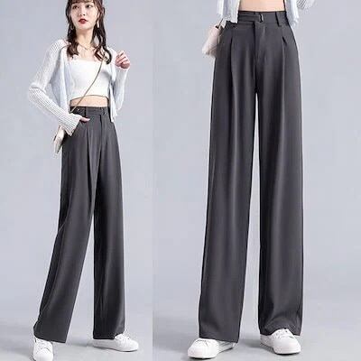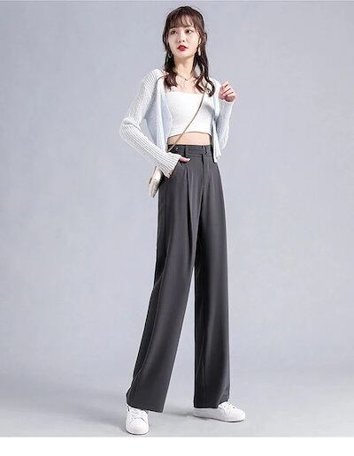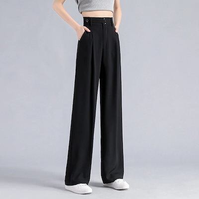 アイスシルク スーツパンツ 夏 涼しい ワイドパンツ 身長UP 通勤 後ゴム 体型カバー