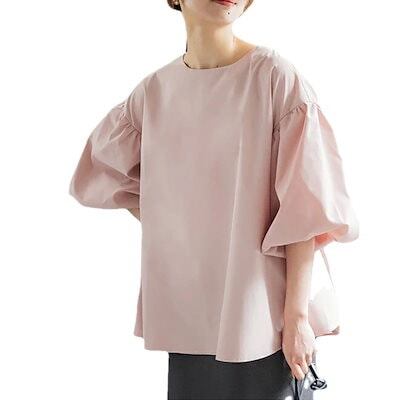 シアーシャツ 新作和風韓国ファッション春夏ゆったり大きいサイズレディースシャツランタン袖ラウンドネックトップス