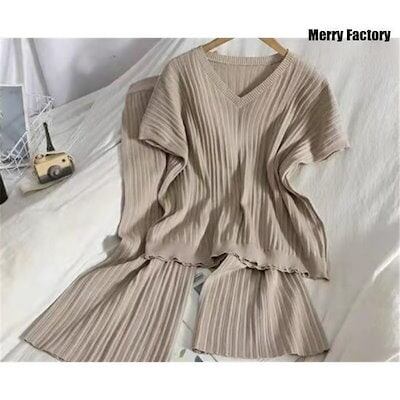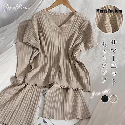 【30%値下げ】パンツ セットアップ レディース Tシャツ ブラウス 半袖 カジュアル ワイドパンツ サマーニット 無地 きれいめ ロングパンツ 体型カバー 着痩せパンツ セットアップ レディース T