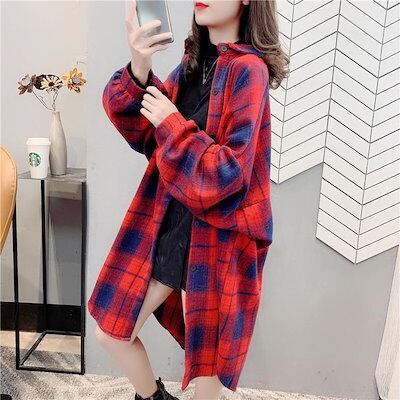 ブラウス 初春アウター チェックブラウス レディース 大きいサイズ 体型カバー?カーディガン 韓国ファッション 百掛け 着痩せ ロングコートカジュアル 怠惰な風 Tシャツ 長袖トップスt