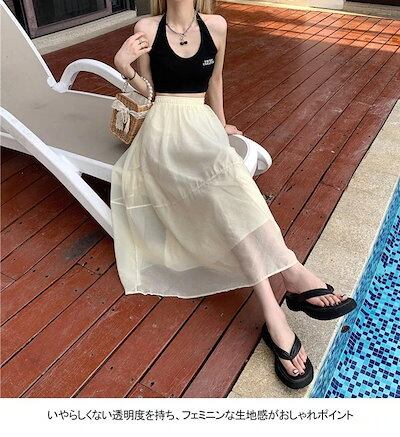 フレアスカート レディース ロングスカート 薄手 ギャザースカート Aラインスカート 透明 裏地付き スカート マキシ丈 サマースカート ウエストゴム おしゃれ ボトムス Aライン マキシスカート
