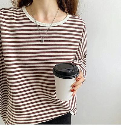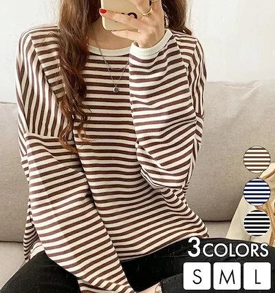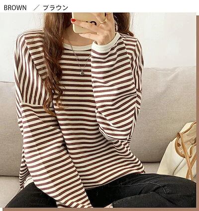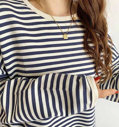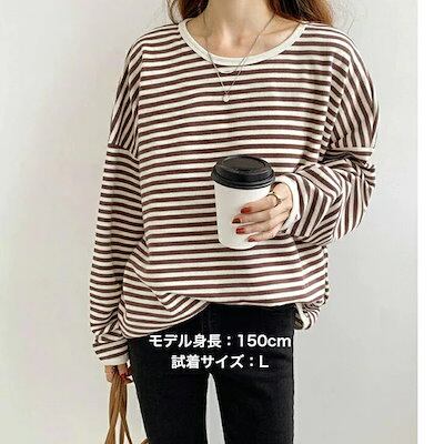 ボーダー カットソー 全3色 ラウンドネック オブロングネック ボートネック トップス 長袖 レディース カジュアル ナチュラル Tシャツ ロンt インナー オールシーズン 154