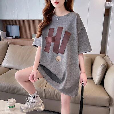 ゆったり セミロング シャツ 体型カバー? 韓国ファッション レディース トップス/ブラウス 怠惰な風 tシャツ 大きいサイズ 夏 Tシャツカットソー ロングTシャツ 半袖