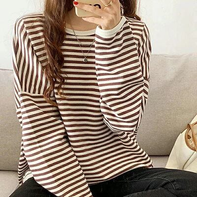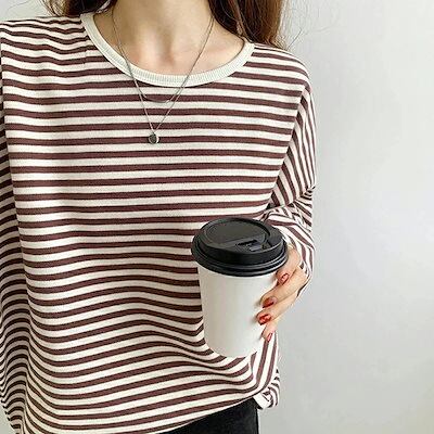 ロングtシャツ 長袖 ロンt レディース カットソー 【即日発送】ボーダー 配 オーバーサイズプルオーバー 大きめ tシャツ ゆったり トップス パイピング tシャツ ドロップショルダー ボリューム袖