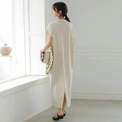体型 マキシ丈 スリット Tシャツワンピース マキシ丈ワンピース ロングワンピース クルーネック ゆったり ワンピ マキシワンピース ロング ロング丈 マキシ 半袖 【即日発送】ワンピース レディース