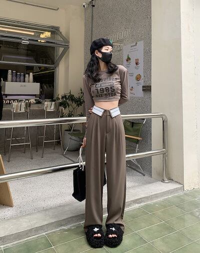 ハイウエスト タック ワイドパンツ 折り返し ボトムス 長ズボン ロング丈 カジュアル きれいめ ストレート おすすめ レディース オシャレ トレンド 人気 プチプラ 韓国ファッション【1709-ff