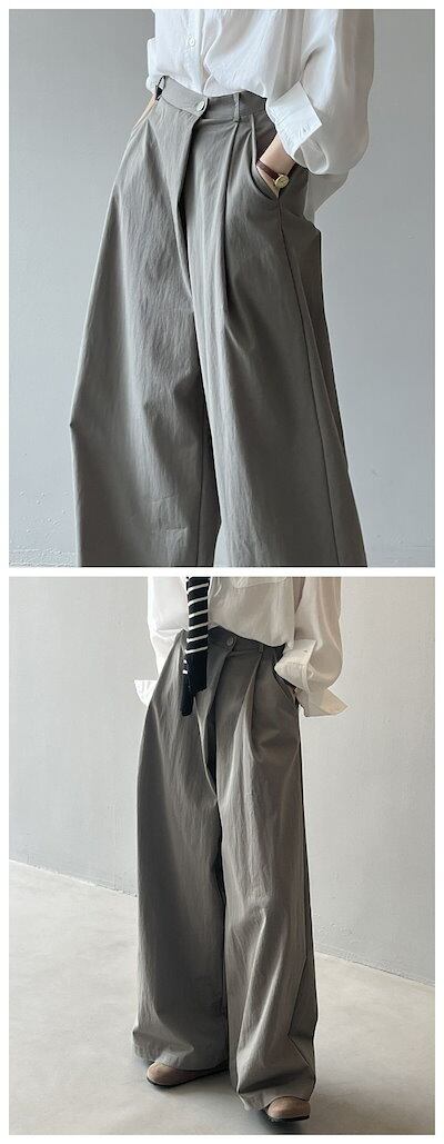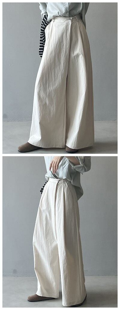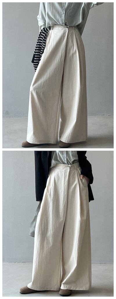 ワイドパンツ レディース きれいめ 不規則 前立て ボタン ハイウエスト ガウチョパンツ ゆったり ボトムス ポケット付 ロング パンツ 着痩せ 着回し 春夏秋 長ズボン リラックス 無地 上品 ブラ