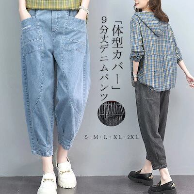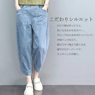 デニムパンツ レディース パンツ ワイドパンツ 夏 9分丈 デニム ガウチョパンツ ボトムス ジーンズ ロングパンツ 体型カバー 無地 大きいサイズ ゆったり パンツ ワイド 着痩せ ハイウエスト ウ