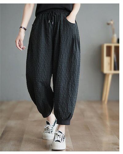 ハロンワイドパンツ 綿麻 パンツ レディース ボトムス ガウチョパンツ ハロン ワイド チェック柄 春 薄手 夏 ウエストゴム ロングパンツ ズボン ポケット付き 大きいサイズ リネン風 ハイウエスト 体型