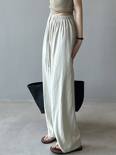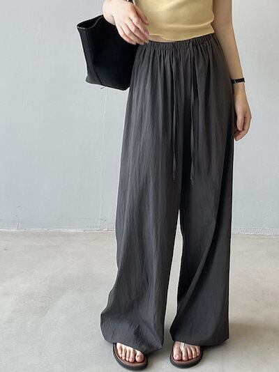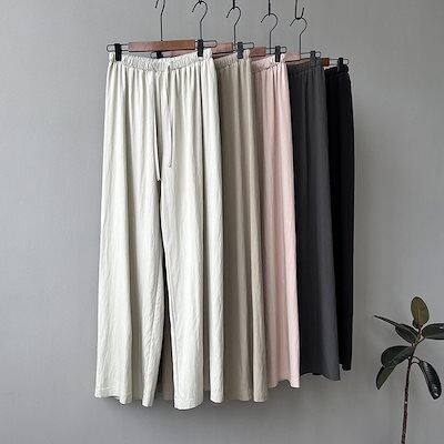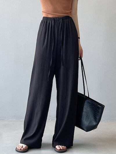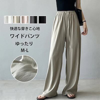 ワイドパンツ タック レディース ストレートパンツ 春 夏 ウエストゴム ハイウエスト 無地 パンツ リボン ロングパンツ ゆったり オフィス イージーパンツ ボトムス ボリューム ワイド カジュアル