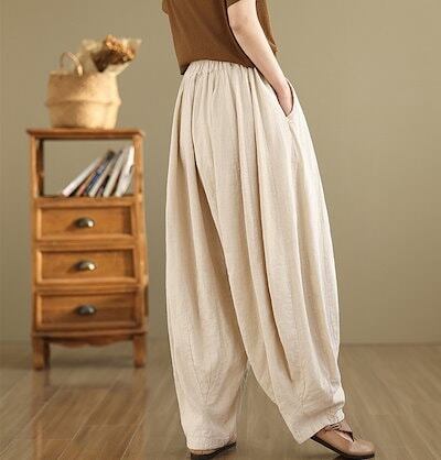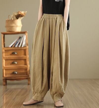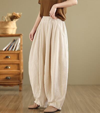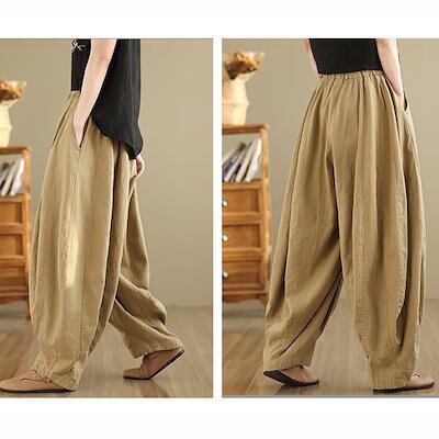 バルーンパンツ 綿麻風 レディース ワイドパンツ 大きいサイズ パンツ バルーン ロング ロングパンツ ズボン ウエストゴム ハイウエスト サルエルパンツ ポケット イージーパンツ ゆったり ボトムス