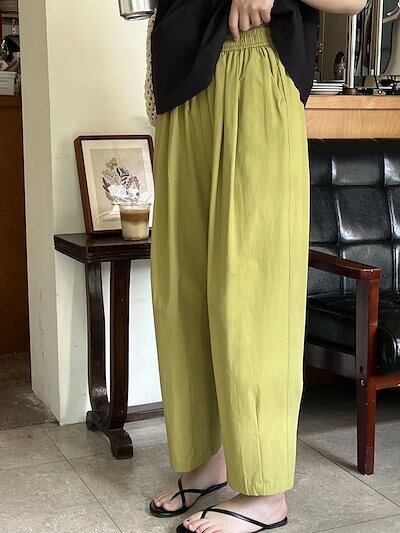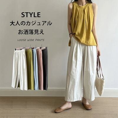 ワイドパンツ タック レディース ストレートパンツ 春 夏 ウエストゴム ハイウエスト 無地 パンツ ポケット付き ロングパンツ ゆったり オフィス イージーパンツ ボトムス ボリューム ワイド カジ