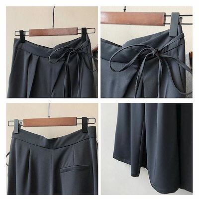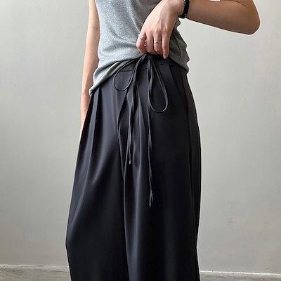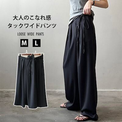 ワイドパンツ ワイド ストレートパンツ 大きいサイズ レディース ガウチョパンツ 春 夏 リボン ハイウエスト ポケット付き ロング丈 ロングパンツ ゆったり タックパンツ オフィス ボトムス ボリュ