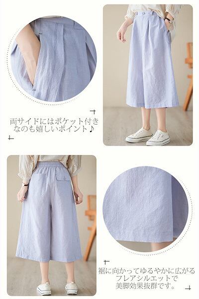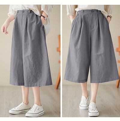 ワイドパンツ レディース 綿麻風 ガウチョパンツ 夏 7分丈 ウエストゴム ハイウエスト ポケット付き パンツスカート タック ゆったり オフィス ボトムス ボリューム スカーチョ ワイド カジュアル