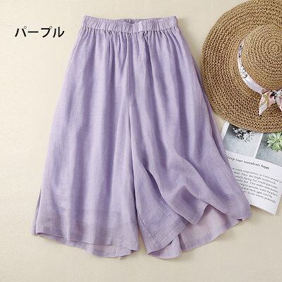 ガウチョパンツ レディース 大きいサイズ 七分丈 ワイドパンツ 夏 春 スカート風 パンツ ワイド ハイウエスト ウエストゴム ボトムス スカーチョ ゆったり ズボン 無地 イージーパンツ 裏地あり