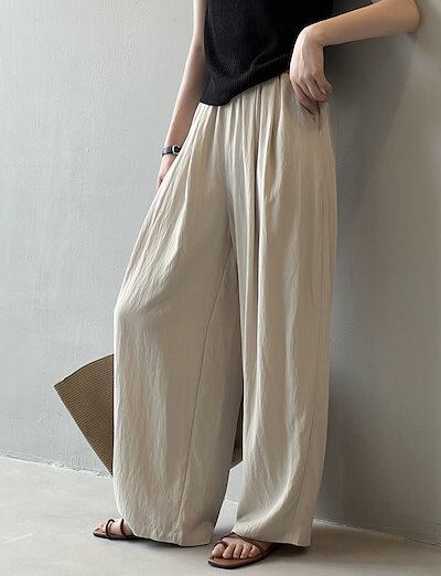 ワイドパンツ ワイド ストレートパンツ 大きいサイズ レディース ガウチョパンツ 春 夏 ウエストゴム ハイウエスト ポケット付き ロング丈 ロングパンツ ゆったり タックパンツ オフィス ボトムス