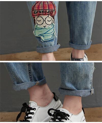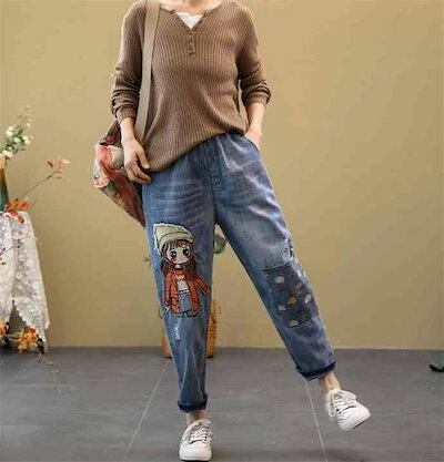 パンツ レディース デニムパンツ ロング ボトムス 春秋 春 夏 秋 デニム スプライス オリジナル ロング丈 9分丈 サーカスパンツ ハイウエスト 裾ロールアップ 着回し リラックス 高見え 細見え