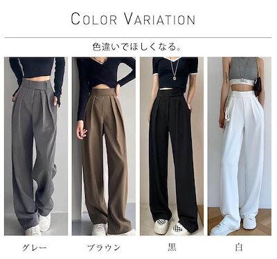 タックワイドパンツ レディース ボトムス 春 夏 秋 ワイドパンツ マジックテープ タック スラックス 美シルエット オリジナル タックパンツ ハイウエスト ロング丈 マキシ丈 長ズボン 高級感 無地