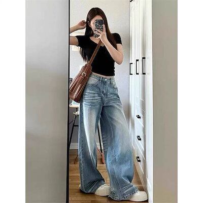パンツ ワイドパンツ レディース ストレート ボトムス ワイドデニム デニムパンツ ジーンズ ジーパン デニム ハイウエスト大きいサイズ ゆったり ストリート 綿 春 夏 秋 冬 ワイド パンツ 美シ