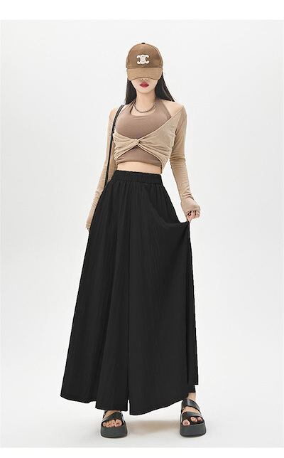 ワイドパンツ パンツ フレア 夏 レディース マキシ ロングパンツ ガウチョパンツ 春 ボトムス パンツ ロング丈 ウエストゴム ガウチョ ワイド 無地 体型カバー 揺れる 薄手 綺麗め ハイウエスト